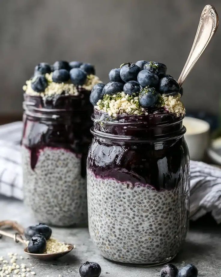 Easy blueberry chia pudding ,Give it a try this week. Then make four jars and future-you will be very, very grateful. 🌿