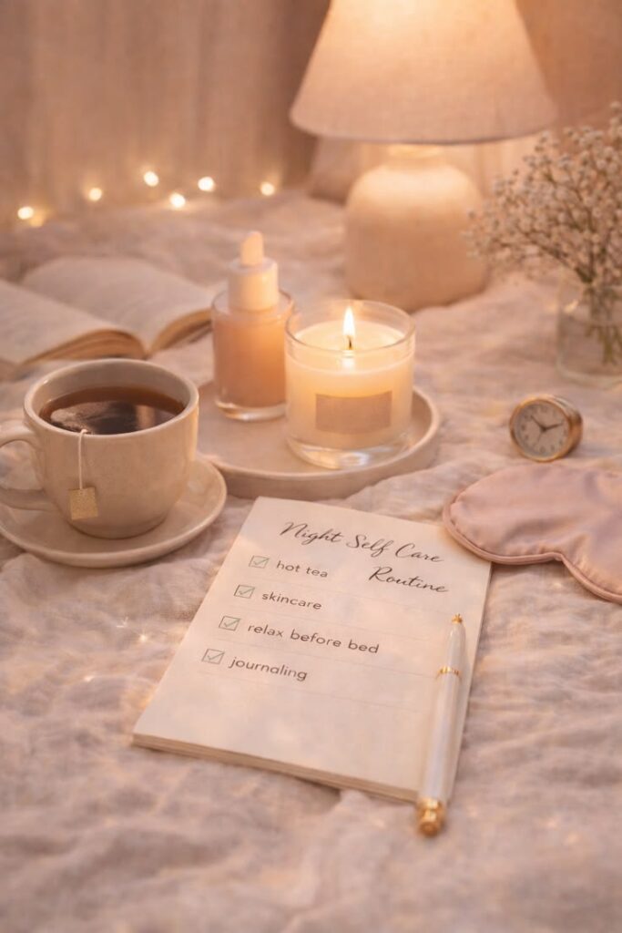Skincare isn’t vanity — it’s a daily act of self care. Light a candle, use products that smell good, and make it feel like your time. If you want to know which habits actually give you that lit-from-within glow, my guide on glowing skin habits breaks it all down simply.